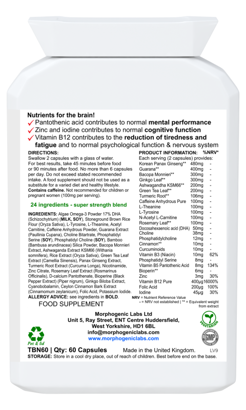 Ginseng, Bacopa, Ginkgo, Ashwagandha, DHA |