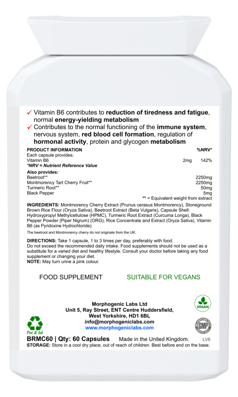 Beetroot, Montmorency Cherry, Turmeric, Black Pepper, Vitamin B6 |