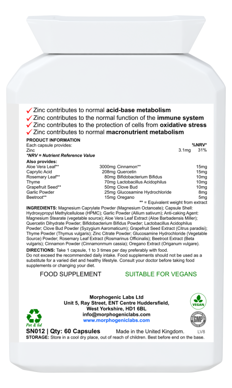 Aloe Vera, Probiotics, Zinc, Garlic, Oregano |